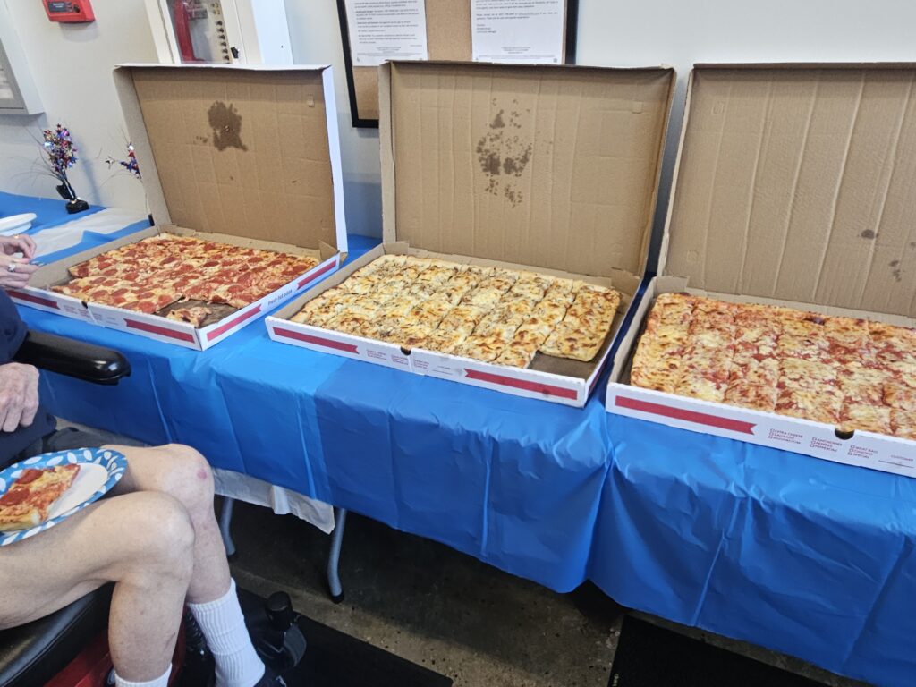 Century Sunrise residents enjoyed a memorable afternoon of live music on Thursday, April 16, 2026, as professional violinist Aaron Buck brought his acclaimed series, Unbroken Frequency, to the main lobby. The building’s historic brick architecture and soaring ceilings created a rich, resonant backdrop that elevated the performance experience for all in attendance. Guests also enjoyed pizza and refreshments, adding to the warm, community atmosphere of the event.